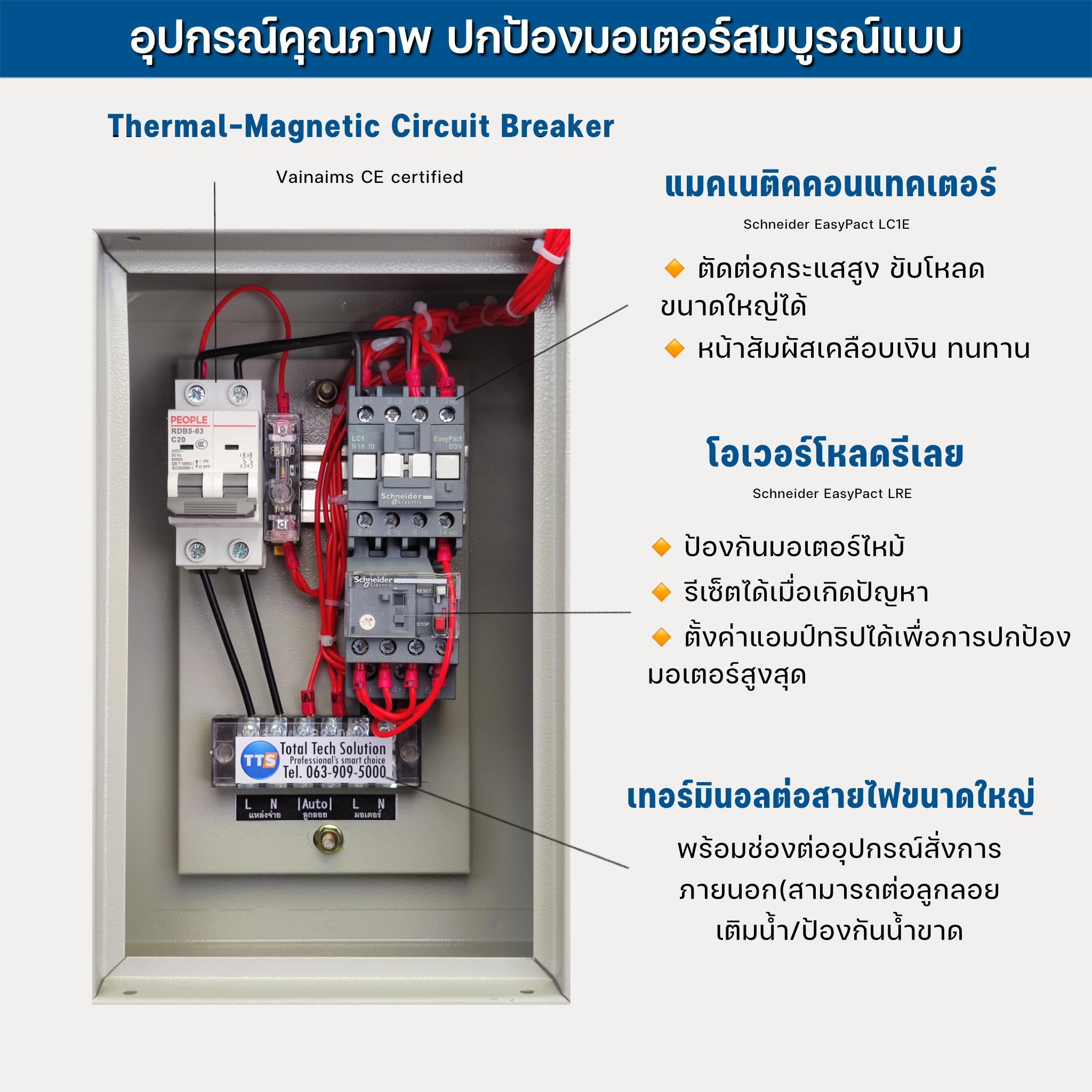 👍ป้องกันมอเตอร์ไหม้ ด้วยโอเวอร์โหลดรีเลย์แบบ 3-Element คุณภาพสูง ทริปได้อย่างแม่นยำเมื่อมอเตอร์ดึงกระแสเกิน เช่น ดิน/ทรายเข้าไปติดในปั๊มน้ำ, ลูกปืนโรเตอร์แตก, ใช้มอเตอร์เกินกำลัง ฯลฯ