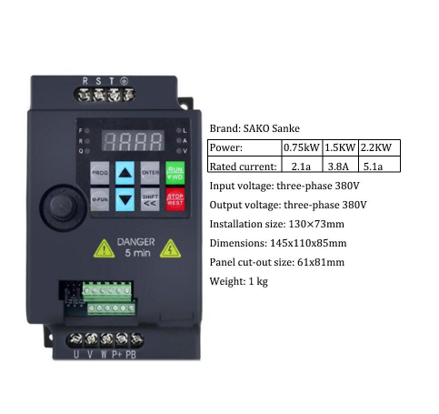| ขนาดมอเตอร์ | 0.75kW 1HP, 1.5kW 2 HP, 2.2kW 3HP, 4kW 5HP, 5.5kW 7.5HP |